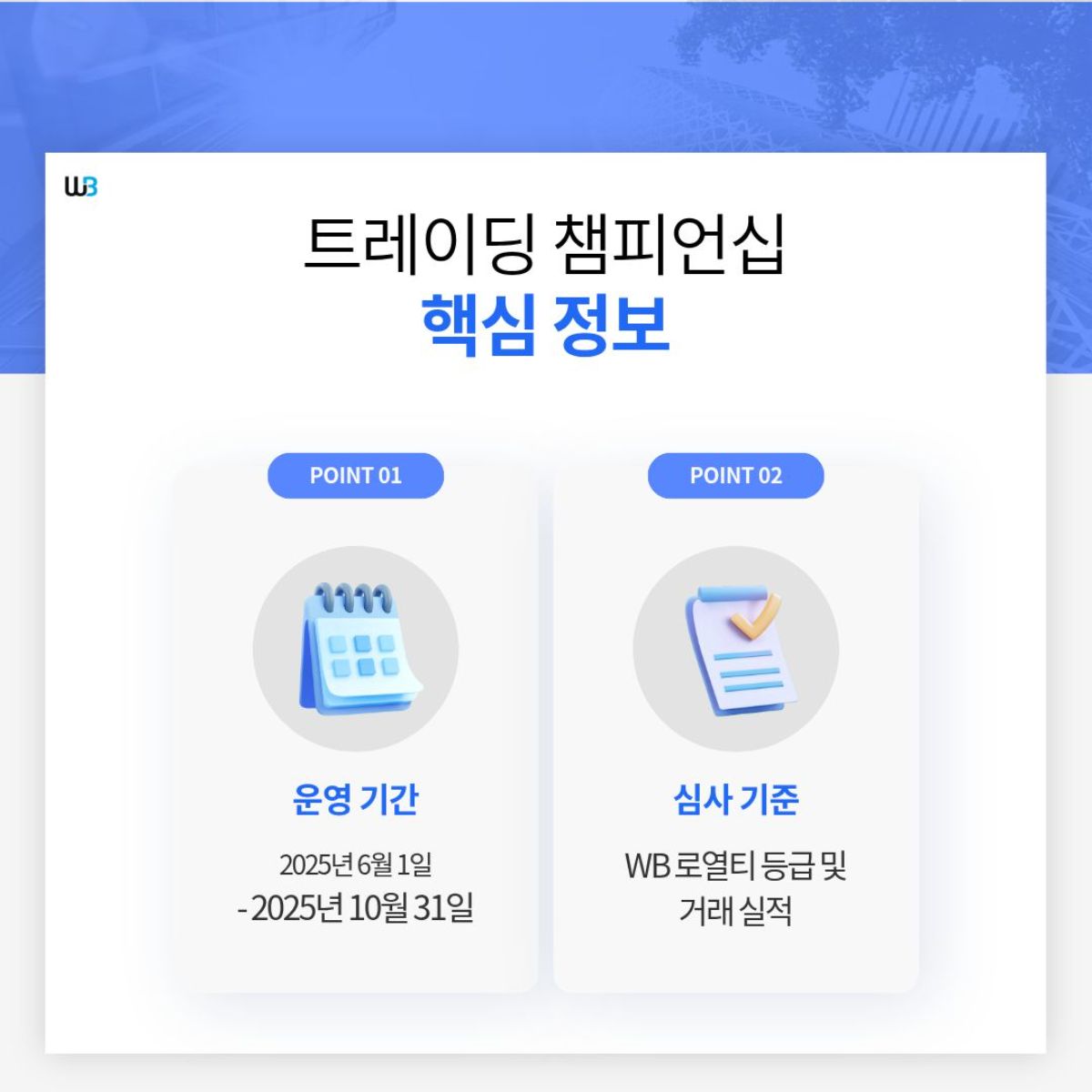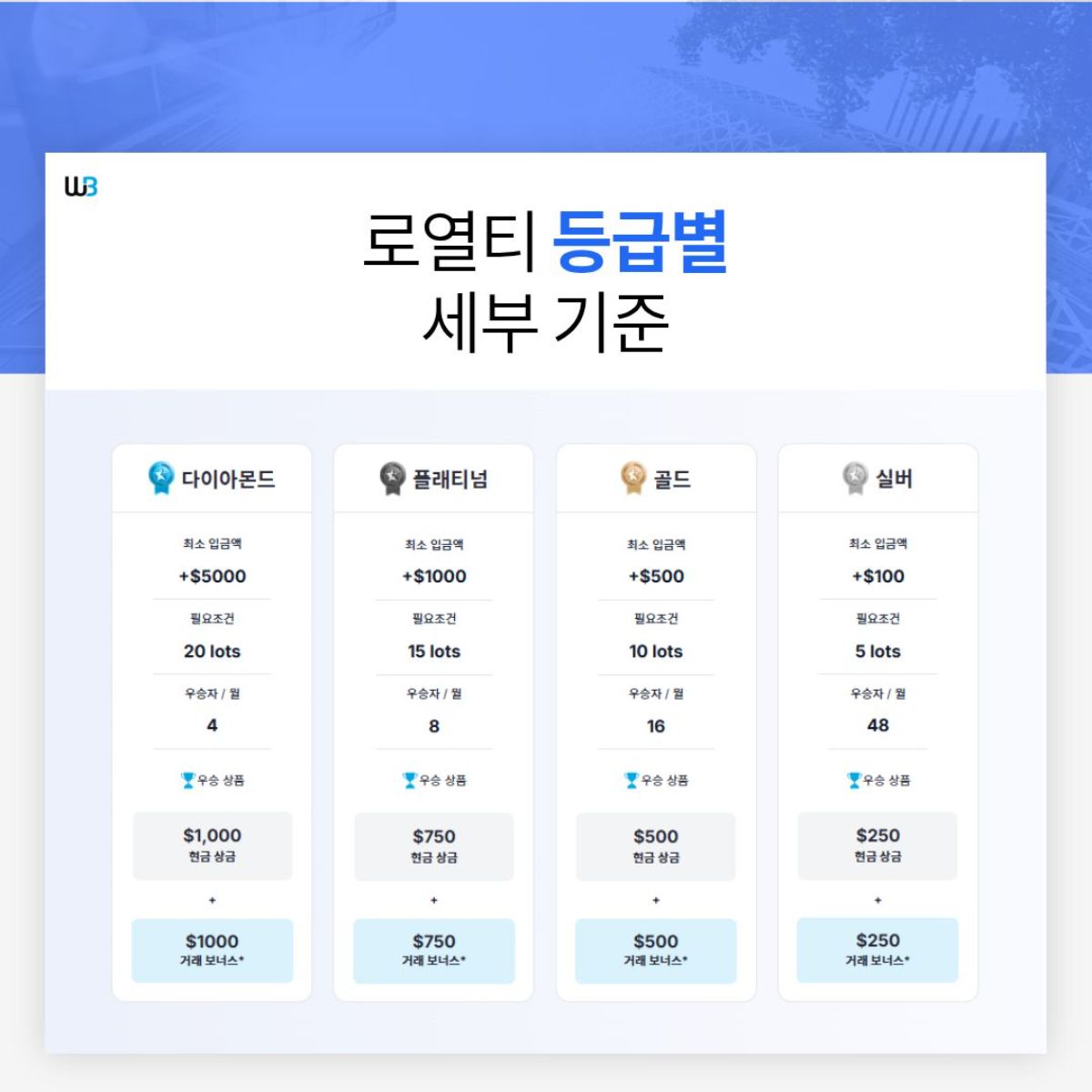 심사 기준 | WB 로열티 등급 및 거래 실적 |
